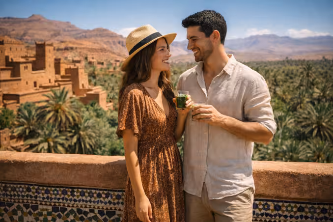 La ruta incluye paradas en pueblos bereberes donde podrás tomar el tradicional té a la menta.